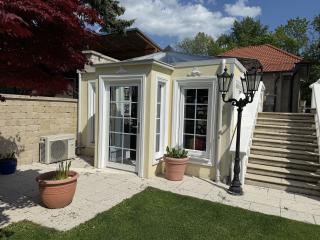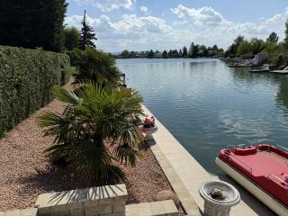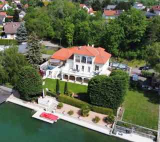 Dieses außergewöhnliche Anwesen ist das größte und exklusivste Haus am idyllischen Bauernsee bei Neufeld – ein Ort, an dem Ruhe, Privatsphäre und gehobene Wohnkultur aufeinandertreffen. Ob als stilvolle Residenz, exklusives Ferienhaus oder Rückzugsort für besondere Anlässe: Diese Immobilie lässt keine Wünsche offen. GRUNDSTÜCKSGRÖSSE: 1.174 m² - Pachtgrund NUTZFLÄCHE: ca. 360 m² ERDGESCHOSS: Diele, großzügiges Wohnzimmer mit Ausgang auf die Terrasse mit traumhaftem Blick über den See, Küche, Speis, WC; OBERSCHOSS: Elternbereich mit Schlafzimmer, Bad und Schrankraum, 2 Kinderzimmer, Badezimmer, WC; KELLEGESCHOSS: Gästezimmer, Heimkino, Wellnessbereich, Fitnessraum, jeweils mit Ausgang auf die überdachte Terrasse; Weinkeller, Technik; NEBENGEBÄUDE: Doppelgarage, verglaster Trainingsraum, Pavillon mit Whirlpool HEIZUNG: neue Luftwärmepumpe HWB: 104,2 kwh/m²a fGEE: 1,73 Die komplette Liegenschaft inklusive dem Trainingsraum ist klimatisiert. KAUFPREIS: € 1.890.000,-- jährliche MIETE: € 32.500,-- Der Vermittler ist als Doppelmakler tätig.