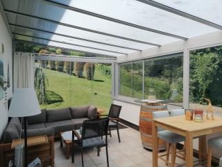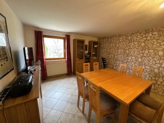 GRUNDSTÜCKSGRÖSSE: 3.957 m² NUTZFLÄCHE: ca. 250 m² BAUJAHR: 1994 ERDGESCHOSS: Vorraum, möblierte Küche mit Durchgang in den verglasten Sommergarten, großes Wohnzimmer mit Kachelofen und Ausgang auf die überdachte Terrasse, Büro, Bad, WC; DACHGESCHOSS: Galerie, 2 Kinderzimmer mit Balkon, Schlafzimmer, Schrankraum, Bad, WC; KELLER: großer Vorraum, ca. 28 m² großer beheizter Raum mit Tageslicht, Fitnessraum, WC, Lager, Heizraum, Garage; HEIZUNG: Gaszentralheizung und Kachelofen HWB: 81,3 kwh/m²a fGEE: 1,01 Diese außergewöhnliche Liegenschaft am Waldrand von Bad Sauerbrunn bietet direkten Zugang zum angrenzenden Wald, einen atemberaubenden Fernblick, ein hohes Maß an Privatsphäre und dennoch Zentrumsnähe. Das Haus wurde in den letzten Jahren umfassend modernisiert und aufgewertet: neue Sanitärräume, eine moderne Fassadengestaltung, neue Garagentore, eine Terrassenüberdachung mit elektrischer Beschattung sowie ein verglaster Sommergarten sorgen für ein besonderes Wohnambiente. Zudem sorgt eine Photovoltaikanlage mit einem 15kWh Speicher für nachhaltige Energieversorgung. Der ca. 28 m² große beheizte Kellerraum mit Tageslicht bietet vielfältige Nutzungsmöglichkeiten – ob als Therapie- / Praxisbereich oder zusätzlicher Wohnraum. Ein weiterer beheizter, ca. 20 m² großer Raum kann für Hobby, Fitness, Sauna (Wasseranschluss für Dusche vorhanden) etc. genutzt werden. Abgerundet wir dieses attraktive Angebot, durch einen aufwendig, aber zugleich pflegeleicht angelegten Garten inklusive Rasenroboter und durch 2 Garagen KAUFPREIS: € 949.000,-- Der Vermittler ist als Doppelmakler tätig.